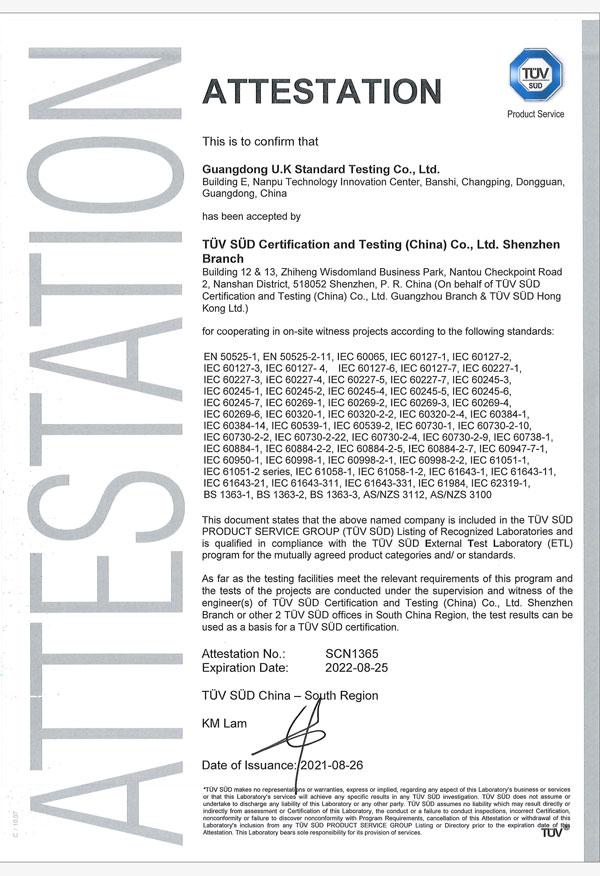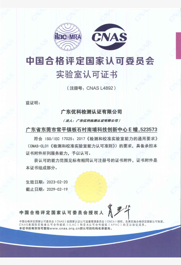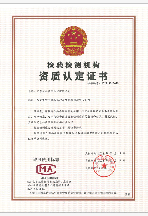 廣東優(yōu)科檢測認證有限公司(簡稱:UKK)成?于2007年,是國內專業(yè)的汽車整車及零部件、電子元器件第三方檢測實驗室,國家級中小企業(yè)公共(技術)服務示范平臺,獲得了國家?新技術企業(yè)、廣東省專精特新中小企業(yè)、市級工程技術研發(fā)中心等榮譽稱號。 More
